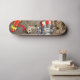 Planche à roulettes avec personnages de dessin animé, Reddy the Color Monkey, Grrr Dog, Cool Froyd the Cat, and Dangerous Girl, le tout conçu par l'artiste, écrivain, animateur et skateboarder sud-australien David Arandle (TET). Voici le pilote graphique de skateboard personnel de TET de choix.