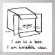 Angry Cat est partie ninja. Vous n'avez même pas remarqué à quelle vitesse il a repris la boîte que vous avez laissée par terre. Et maintenant qu'il est dans la boîte, personne ne peut le voir. Même pas le chien. Laissons-le croire, n'est-ce pas ? Un grand cadeau pour les propriétaires de chats, les amoureux de les chats, un vétérinaire, une animatrice ou une dame folle. En fait, juste pour quiconque a besoin de rire. Vous pouvez voir d'autres dessins de mon Chat en colère dans ma boutique Zazzle ici : http://www.zazzle.com/funkychicdesigns
