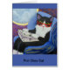 Le chat de smoking se repose lisant le papier sur un avion dans un siège de la première classe de peluche.