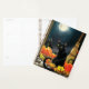 Un chat noir est assis dans une porte avec des citrouilles, une lanterne, un balai, des feuilles d'automne et une pleine lune de récolte derrière.