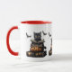 Commencez votre éffrayante saison avec cette chope d'Halloween enchanteresse et fantaisiste. Le design comprend un chat noir intelligent portant un casquette de sorcière, perché sur une pile de livres d'orthographe et un jack-o'lanterne, tandis que les chauves-souris volent autour. Cette scène magique et cosy est parfaite pour savourer votre brasse préférée pendant une soirée d'automne. C'est un ajout fantastique à votre décor d'Halloween et un cadeau parfait pour les amoureux de les chats et tous ceux qui aiment le côté ludique et mystique de la saison.