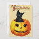 Vintage Ellen Clapsaddle Carte postale Halloween de la série 1237 montrant un chat très mignon assis dans un citrouille. Reproduit sur cette Invitation de la fête d'Halloween.