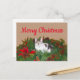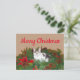 Lucy dans une couronne verdoyante et rouge festive avec un arrière - plan marron rustique.