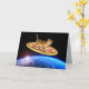 CHAT ÉQUITATION PIZZA EN CARTE D'ANNIVERSAIRE SPATIALE.