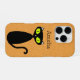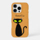 Mod Kätzchen mit grünen Augen und einem orangefarbenen Hintergrund. Wenn Sie einen anderen Fall haben, müssen Sie möglicherweise anpassen, sodass die Kamera nicht Ihren Namen abdeckt. Sie können die Hintergrundfarbe ändern. Personalisieren oder entfernen Sie den Namen!