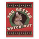 Katzenliebhaber, du solltest besser aufpassen! Funny Abyssinian Katzenkatze Grußkarte mit Retro Vintage Grafik erinnert an hässliche Weihnachtsschwitzer. Kleine Weihnachtsbäume und Schneeflocken und eine niedliche Aby Cat auf einem traditionellen roten und grünen Hintergrund. Perfekte lässige "Einladung" für ein Party in einem Katzencafé, Tierarztbüro oder die Zuhause einer verrückten Katzenfrau. Schicken Sie an Ihren Katzensitzer und an jeden, der seine Freunde Liebe.