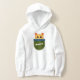 Un adorable chat orange nommé Kenzo avec de grands yeux regarde d'une poche verte avec une couture bleue. Ce design ludique allie douceur et touche personnalisée.