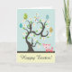 Chat rose mignon de Kitty avec une carte de voeux heureuse de Pâques de pâques d'arbre coloré d'oeuf