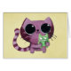 Chat mignon tenant le petit monstre vert. Ce petit chat aime son petit monstre mignon. Il le serrent, il l'étreint, il l'aime ! Pour toujours