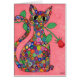 Cette belle chatte est assise contre un arrière - plan rose doux, montrant ses marques complexes et inhabituelles, semblables à celles que l'on retrouve sur les perles millefiori et le verre. Dans sa bouche, elle tient une seule rose rouge, dans ce design unique, stimulant et très détaillé.