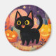 Chat noir mignon avec Jack-o-Lanterns - Aimant