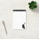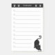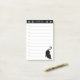 Chat noir mignon sur notes post-it noir et blanc