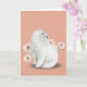 Chat persan blanc mignon avec fleurs marguerites blanches sur des points blancs et arrière - plan orange pour anniversaire général.