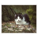 Chatte à air noir et blanc assis entre les arbres
