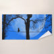 Fantastique pleine lune bleue avec un chat noir sur un fil le regardant