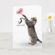 Chatte de tabby gris avec ballon de coeur rose pour 5ème anniversaire sur arrière - plan blanc. La couleur Arrière - plan peut être modifiée