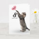 Chatte de tabby gris avec ballon de coeur rose pour 8ème anniversaire sur arrière - plan blanc. La couleur Arrière - plan peut être modifiée