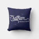 Dieses Kissen enthält den Text Chatham, Massachusetts in einem weißen nautischen Schriftart mit Seestern Akzente. Der Hintergrund ist marineblau, kann aber in eine beliebige Farbe geändert werden. Ideal für die Dekoration zum Thema Meer, Küste oder Wassersport.