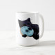 Chaton noir mignon mangeant un beignet. Art numérique.