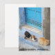 Chats nappés à la porte d'un des célèbres bâtiments bleus de Chefchaouen, Maroc.