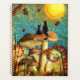 Image mignonne de deux chats assis au-dessus d'un champignon géant dans une forêt remplie de champignons qui observent les feuilles d'automne tomber contre le soleil et le ciel bleu pour créer un merveilleux panorama de l'histoire. .