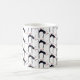 Tasse à café noir, rouge et blanc avec chats et coeurs noirs.