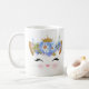 tasse en céramique Amoureux des chats, avec de jolis graphismes d'un visage de chat de dessin animé avec de gros cils aux yeux, et une couronne dorée avec des fleurs bleues. Texte, sur le devant de la tasse lit la règle des chats, et peut être personnalisé pour lire ce que vous voulez.
