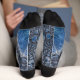 Ces chaussettes présentent un art fractal complexe en bleu foncé et noir.