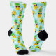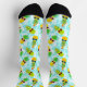 Ananas de Noël tropical, amusant, portant des lunettes de soleil et décoré de façon festive avec des lumières de Noël, des ornements et des sucres de canne. Ce motif a un arrière - plan bleu pastel avec des fleurs d'hibiscus hawaïens. Montré ici sur des chaussettes personnalisées, premium et durables. Un design amusant pour fêter un Noël de plage !