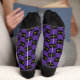 Chatte noir et violet Chaussettes motifs Halloween. Costume accessoire unique pour elle. Design Halloween éffrayant avec têtes de chat noir aux yeux jaune vif. Chaussettes de fête Halloween sur mesure avec de nombreuses couleurs différentes.