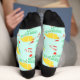 Yellow canaries wearing Santa hats and perched on winter greenery sing, "Fa la la la laaa" for a festive canary pattern on custom socks. Choose your favorite color background instead of the light mint green shown here. Pet bird lovers are sure to enjoy these cute Christmas socks!