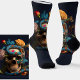 Chaussette Crâne gothique, serpent bleu et fleurs sur bleu