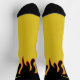 Keep your feet warm with personalized socks featuring illustrations of flames in yellow and red set against a black background. Your name appears in bold yellow lettering with a distressed style. Best of all you'll look the part for your next hot-footed pursuit!