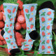 Un design mignon et sucré qui présente un motif délicieux et ludique de petites fraises éparpillées sur un arrière - plan doux bleu ciel. Les fraises sont rendues dans un rouge vif avec des feuilles verts, et elles sont entrecoupées de petites fleurs de fraises blanches ou jaunes clairs, ce qui ajoute au charme. L'ensemble est gai, frais et sucré.