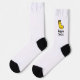 Start your day on the right foot with these instantly uplifting "Happy Socks." Featuring a bright, cartoon-style yellow sock with a wide, friendly grin and a bold logo, this design is a playful reminder to keep smiling. The clean white body and contrasting black heel and toe offer a classic look that makes the bright graphic pop. Perfect for adding a boost of cheer to your casual wardrobe or for gifting to someone who needs a little dose of daily happiness.
