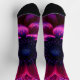 This pair of Fuchsia Nebula socks blooms from a midnight blue starry center into intense magenta jeweled petals. The full galactic design graces each individual sock. A fusion of vintage botanical inspiration and AI imagination