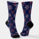 Fun socks for the 4th of July celebration. Patriotic red and white fireworks on a dark blue background. White initials at top of socks. True One Size Fits All (Size 5 Female to Size 11 Male). See 'About' for more information and care.