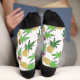 Un motif graphique amusant d'ananas d'été ensoleillés portant des lunettes de soleil de style rétro dans une variété de couleurs décore cette paire de chaussettes. La couleur arrière - plan peut être modifiée en modifiant la conception.