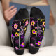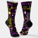 Des chaussettes de filles mignonnes avec des fleurs graphiques et votre propre nom court, lit actuellement Emily imprimé sur eux. Un joli texte de nom rose jaune violet et blanc et motif de fleurs graphiques sur une couleur arrière - plan noire qui peut être changée si nécessaire. Idéal pour personnaliser vos chaussettes pour éviter les mixages. Si vous avez besoin d'autres longueurs de nom s'il vous plaît contactez-moi. © Art graphique et design original par Sarah Trett. www.sarahtrett.com pour www.mylittleeden.com