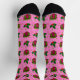 Ces chaussettes de vacances présentent des cadeaux de Noël rouges rétro avec des arcs verts sur un arrière - plan rose avec des feuilles saints et des baies.