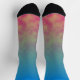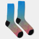 Ces chaussettes évoquent la lueur d'une playlist de fin de soirée qui dérive à travers des lumières néon et une basse résonnante. Des bleus électriques frais se fondent en teintes sarcelle, des verts doux d'aurore boréale, et des touches de couleur chaude près de la base, créant un dégradé qui ressemble à de la musique voyageant dans l'air nocturne. Le flux de couleurs capture la sensation de synthétiseurs superposés et de rythmes fluides qui se construisent en une atmosphère vibrante.