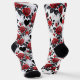 Chaussette Romantic Patterned Red Roses and Black Hearts