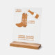 Un design unique et dessiné à la main de chaussures de cowboy de ton terreux rustique. Ce design sur le thème de la campagne comporte des illustrations de bottes de cowboy, des fleurs de style moderne du milieu du siècle, des fers à cheval et bien plus encore. Un beau design idéal pour les fêtes et les événements sur le thème de l'Ouest rural.