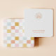 Ohrring-Display-Karte mit einem niedlichen pastellfarbenen karierten Muster. Vorlagenlöcher können angepasst oder gelöscht werden, sowie alle Ihre Firmeninformationen. Fügen Sie Ihre Social Media oder Webseite ganz unten hinzu.