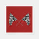 Eine Packung mit 50 weißen Cocktail-Servietten aus Papier mit einem Bild von gekreuzten, karierten Rennflaggen auf rot. Siehe dazu passende Stoffserviette, Küchentücher, Tischset, Tischset und Untersetzer. Sehen Sie sich die gesamte Napkin-Kollektion des Vaters am Tag im NAHRUNGSMITTEL/BEV an | Wäsche.