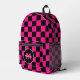 Checked Quadrate Hot rosa schwarze Geometrie Monogramm gedruckter Rucksack. Coole Mode-Accessoires-Tasche für sie. Cooles geometrisches rechteckiges Muster in Retro. Vintage Fliesen schwarz und heiß rosa modernes Schachbrett. Erstellen Sie einen einzigartigen und personalisierten Rucksack mit einer benutzerdefinierten Touch! Modernes Monogramm mit Ihrem Initial und Ihrem Namen für diesen persönlichen Flair.