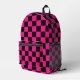 Gekreuzte Quadrate heißen rosa schwarze Geometrie gedruckter Rucksack. Coole Mode-Accessoires-Tasche für sie. Cooles geometrisches rechteckiges Muster in Retro. Vintage Fliesen schwarz und heiß rosa modernes Schachbrett. Erstellen Sie einen einzigartigen und personalisierten Rucksack mit einer benutzerdefinierten Touch!