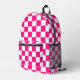 Überkreiste Quadrate Hot rosa weiße Geometrie gedruckter Rucksack. Coole Mode-Accessoires-Tasche für sie. Cooles geometrisches rechteckiges Muster in Retro. Vintage Fliesen weiß und heiß rosa modernes Schachbrett. Erstellen Sie einen einzigartigen und personalisierten Rucksack mit einer benutzerdefinierten Touch!