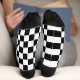 Originelle digitale Kunstwerke auf diesen lustigen Socken mit einem Vintagen Retro-Schachbrettmuster in Schwarz und Weiß. Diese spielerischen verrückten Socken gelten als nachhaltiges Produkt und werden mit wasserbasierten Tinten bedruckt. Gemütlich und gemütlich und machen ein großartiges Geschenk. Eine Größe passt wirklich für alle.