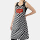 A perfect gift for the Italian Chef or Cook who enjoys preparing Italian food, this design has a crisp black and white checkerboard pattern. A red restaurant style frame surrounds the text template which has Italian text "La cucina di" and can be personalized with the Chef's name. This apron is available in 3 sizes: large, medium, and small. Shown here in the large size.